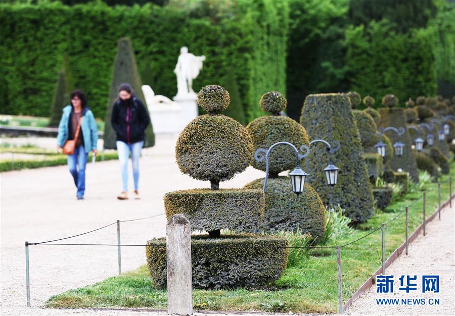 這是4月25日在法國巴黎近郊凡爾賽花園內(nèi)拍攝的經(jīng)過精心修剪的樹木。新華社記者高靜攝