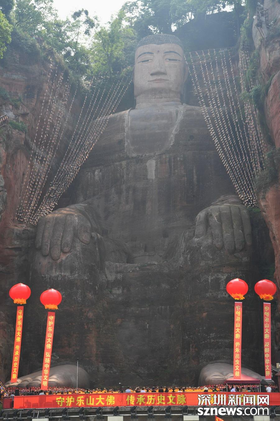 2019年4月26日,四川樂(lè)山,樂(lè)山大佛經(jīng)過(guò)閉關(guān)“體檢”、美容保養(yǎng)及智能監(jiān)測(cè)等環(huán)節(jié)后,胸腹部開裂險(xiǎn)情排除,生物病害得到有效控制,大佛正式出關(guān)。