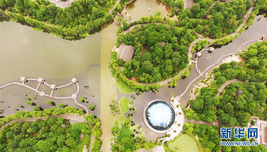 這是5月1日無人機(jī)拍攝的重慶璧山觀音塘濕地公園景象。新華社記者 王全超 攝