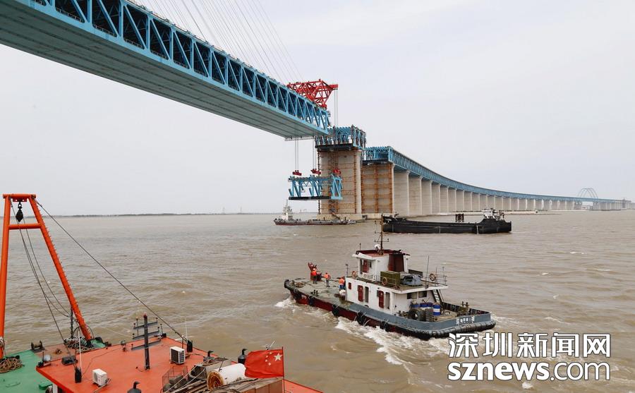 2019年5月6日,由中鐵大橋局承建的滬通長江大橋28號墩,完成了第13輪大節(jié)段鋼梁雙懸臂架設(shè)的吊裝作業(yè)。