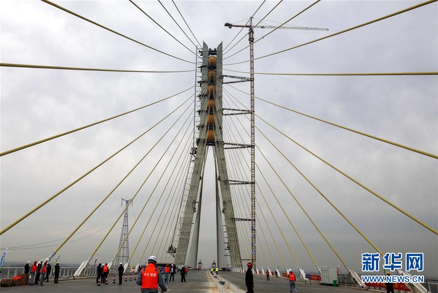 當(dāng)日,隨著最后一節(jié)鋼梁吊裝到位,由中鐵大橋院設(shè)計(jì)、中鐵大橋局施工的武漢楊泗港長江大橋順利合龍,標(biāo)志著這座世界最大跨度雙層公路懸索橋主體工程完工,進(jìn)入橋面鋪裝階段。 武漢楊泗港長江大橋是武漢市內(nèi)建設(shè)的第十座長江大橋,也是長江上首座雙層公路大橋。 新華社記者 肖藝九 攝