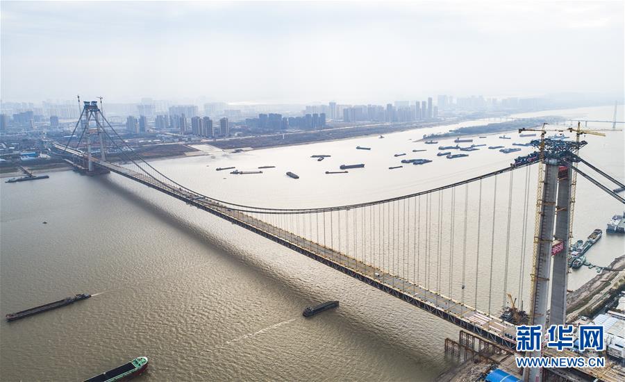 12月29日,武漢楊泗港長江大橋順利合龍(無人機拍攝)。新華社記者 肖藝九 攝