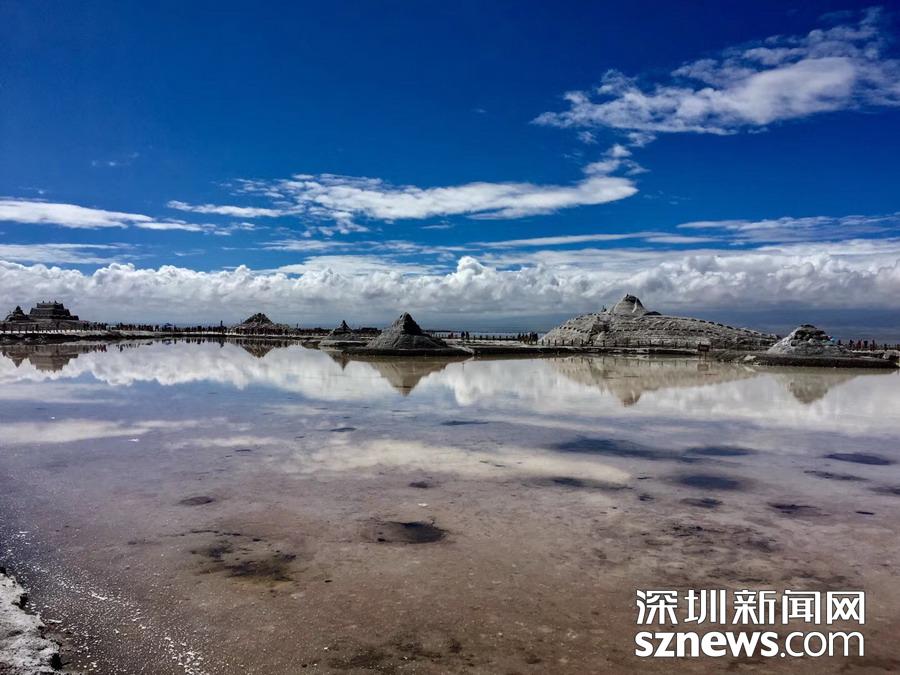 茶卡鹽湖位于青海省海西蒙古族藏族自治州烏蘭縣茶卡鎮(zhèn),原來是一家生產(chǎn)湖鹽的企業(yè),其擁有的鹽湖面積達(dá)105平方公里。近年來他們開始轉(zhuǎn)型發(fā)展旅游業(yè),以其獨(dú)特的“天空之鏡”享譽(yù)全國。李仁奇 攝