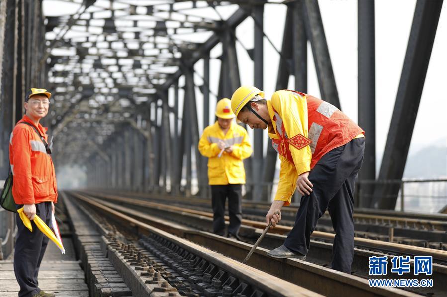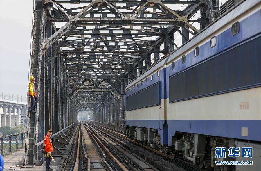 中國鐵路成都局有限公司重慶工務(wù)段的巡檢班組在白沙沱長江大橋上等待機車通過后繼續(xù)作業(yè)(4月23日攝)。 4月23日下午5點40分,隨著重慶白沙沱長江大橋通行的最后一列客運列車順利通過,這座“服役”了59年的重慶首座長江大橋進(jìn)入“退役”倒計時。4月24日后,所有列車將改線經(jīng)距白沙沱長江大橋約100米的新白沙沱長江特大橋通行,新橋“接力”老橋,運輸能力將得到大幅提升。 白沙沱長江大橋于1958年開工,1960年通過首趟列車,是繼武漢長江大橋之后的第二座長江大橋。 新華社記者 劉潺 攝