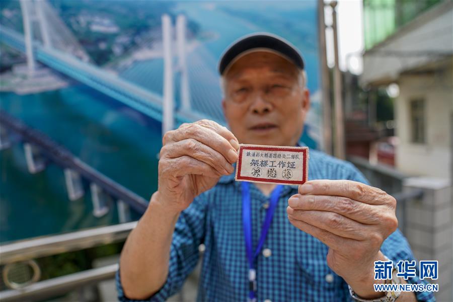 重慶白沙沱長江大橋的建設(shè)者孫貽蓀老人展示他保存的架梁工作證(4月23日攝)。 4月23日下午5點40分,隨著重慶白沙沱長江大橋通行的最后一列客運列車順利通過,這座“服役”了59年的重慶首座長江大橋進(jìn)入“退役”倒計時。4月24日后,所有列車將改線經(jīng)距白沙沱長江大橋約100米的新白沙沱長江特大橋通行,新橋“接力”老橋,運輸能力將得到大幅提升。 白沙沱長江大橋于1958年開工,1960年通過首趟列車,是繼武漢長江大橋之后的第二座長江大橋。 新華社記者 劉潺 攝