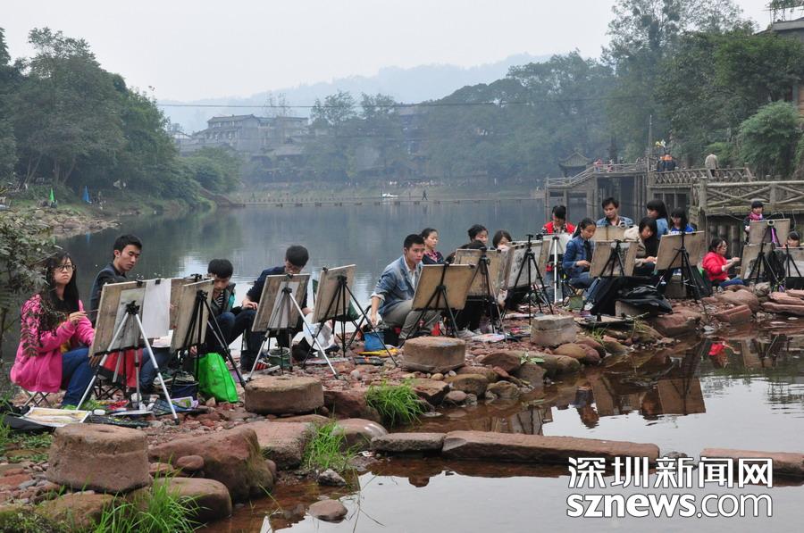 古鎮(zhèn)吸引很多寫生的學(xué)生 李 仁奇 攝