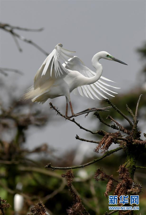 在江西省南昌市新建區(qū)象山森林公園內(nèi),一只白鷺正降落在枝頭(5月21日攝)。 近日,在江西省南昌市新建區(qū)象山森林公園內(nèi),已安家筑巢的大批鷺鳥陸續(xù)孵化出了后代。象山森林公園有著“鷺鳥王國”的美譽,生態(tài)環(huán)境良好,每年都會吸引白鷺、蒼鷺、夜鷺等種類的鷺鳥飛抵棲息和繁衍后代。 新華社記者 彭昭之 攝