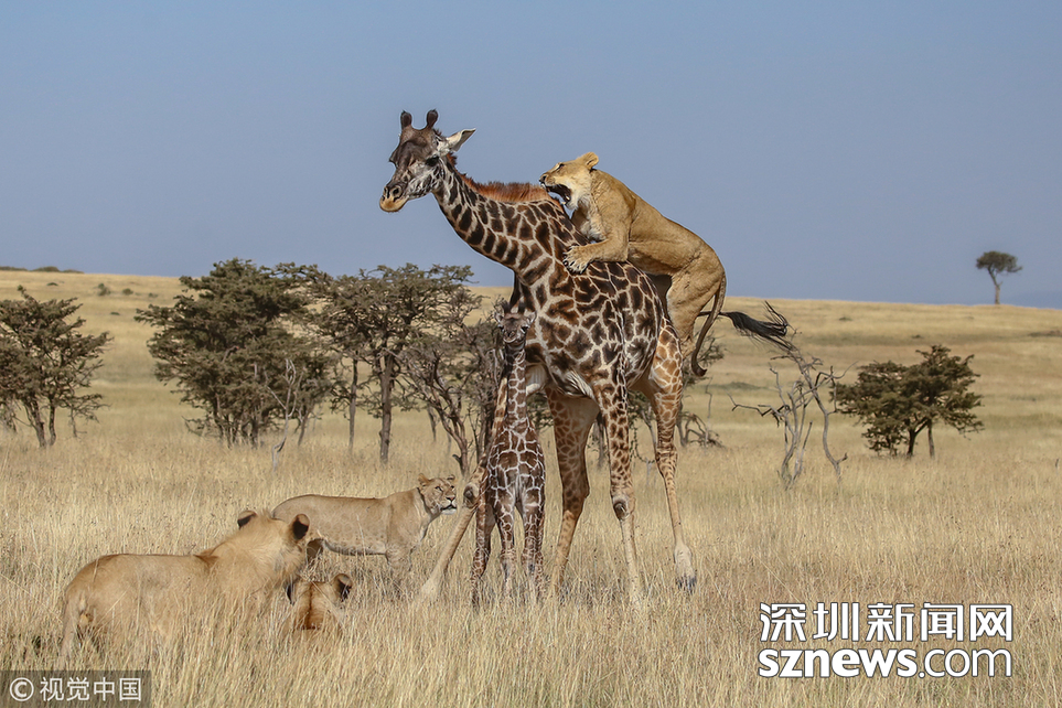 詹姆斯·納帕索解釋說:“這頭小鹿出生只有幾天時(shí)間,但對(duì)獅群來說,要捕獲它仍然是一場(chǎng)巨大的挑戰(zhàn),因?yàn)槟搁L頸鹿竭力保護(hù)它的孩子,而成年長頸鹿的飛踹對(duì)獅子來說通常是致命的?!弊罱K,由于被獅子攻擊頸部,這位勇敢的母親退卻了,它最終失去了它的幼崽。