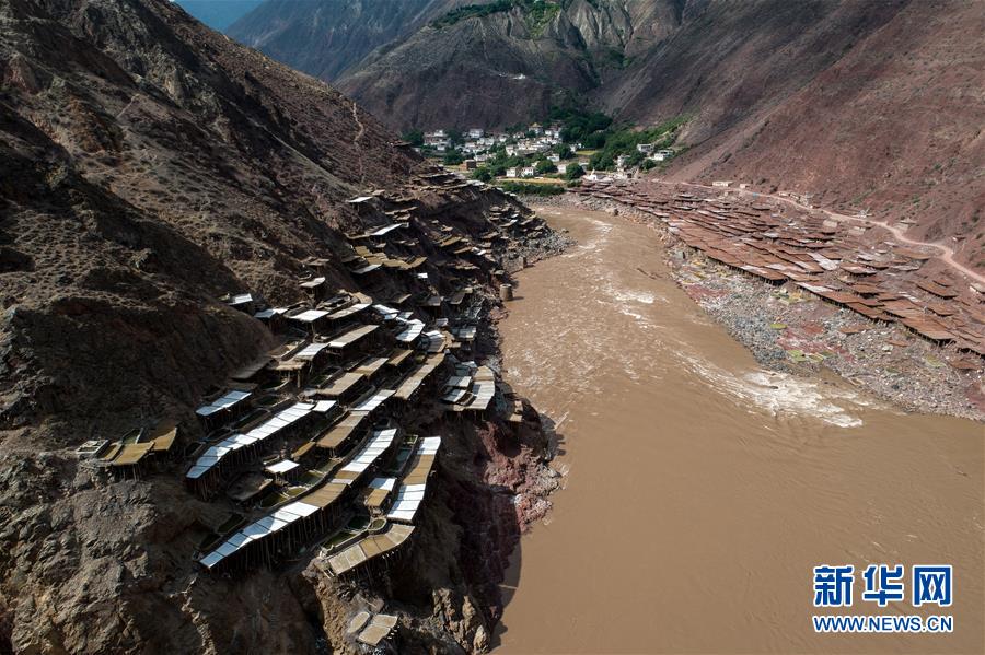 這是西藏芒康縣納西民族鄉(xiāng)的古鹽田景觀(5月22日無人機拍攝)。位于西藏昌都芒康縣瀾滄江畔的古鹽田,至今仍保持最原始的手工曬鹽方式。據史料記載,唐朝時期當?shù)鼐烷_始曬鹽。鹽田在瀾滄江兩岸依山而建,由多根木柱搭架,架上用透水性強的泥土鋪成平面夯實,當?shù)鼐用駨臑憸娼系柠}井、鹽池中取出鹵水倒入鹽田,經陽光蒸曬、風干,結晶成鹽。遠遠望去,鹽田錯落有致,田中鹵水宛若鏡面,形成壯麗奇觀。新華社記者李鑫 攝