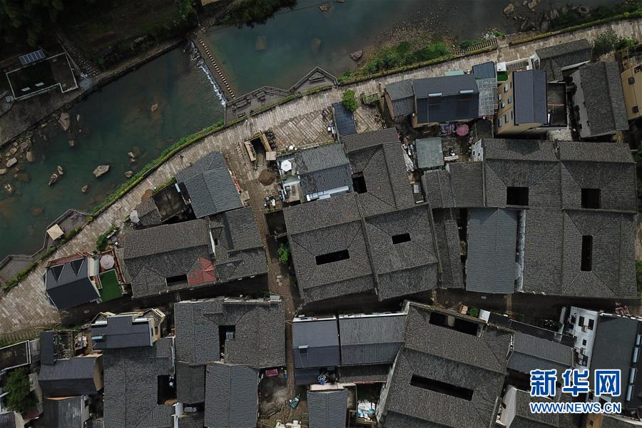 5月26日無(wú)人機(jī)拍攝的富春江鎮(zhèn)石舍村的古建筑群。 石舍村是浙江省桐廬縣富春江鄉(xiāng)村慢生活體驗(yàn)區(qū)中的三個(gè)村落之一,位置偏僻,依溪而居,風(fēng)景秀美。近年來(lái),石舍村結(jié)合古建筑保護(hù)工作,在清潔、美化村莊的基礎(chǔ)上,對(duì)一些廢棄古建筑進(jìn)行修繕,引入咖啡館、民宿等文化創(chuàng)意類項(xiàng)目,優(yōu)良的生態(tài)環(huán)境和濃郁的文化氛圍吸引大批游客前來(lái)體驗(yàn),小山村走上了一條發(fā)展美麗經(jīng)濟(jì)之路。2018年,石舍村接待游客10萬(wàn)8千余人次,旅游經(jīng)營(yíng)凈收入1260余萬(wàn)元。 新華社記者 黃宗治 攝