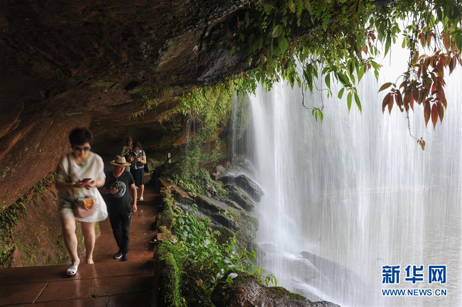 6月4日,游人在貴州赤水四洞溝景區(qū)游覽。 貴州遵義赤水市有眾多大大小小的瀑布群,素有“千瀑之市”的美譽,飛瀑美景吸引八方游客前來賞景度假。 新華社記者鄭雅寧攝
