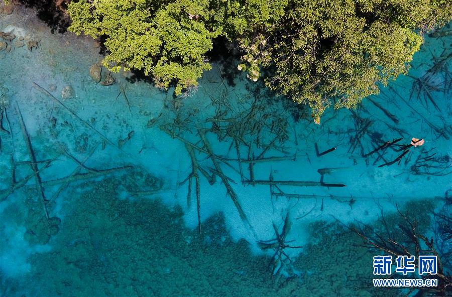 這是九寨溝景區(qū)的五花海景點(diǎn)(6月5日無人機(jī)拍攝)。