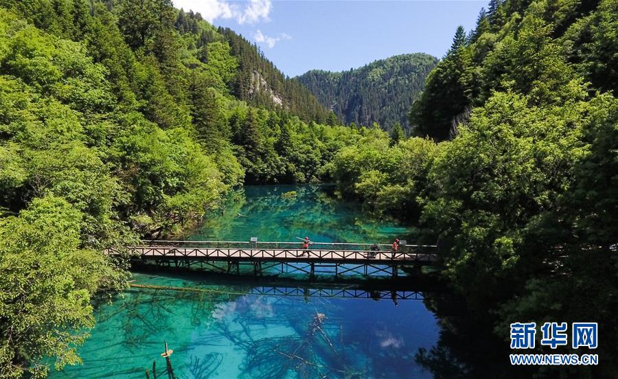 這是九寨溝景區(qū)的鏡海景點(diǎn)(6月5日無人機(jī)拍攝)。新華社記者薛玉斌攝