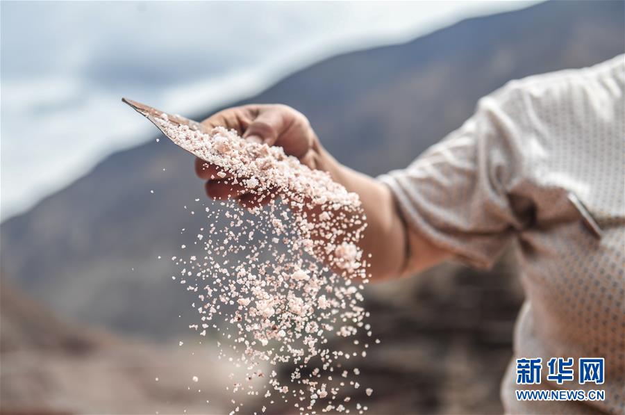 “其實,紅鹽與土質(zhì)有些關(guān)系。我們這里的土石顏色基本上是紅色或絳紅色的,紅鹽應(yīng)該是被浸染的。”格松頓登說。