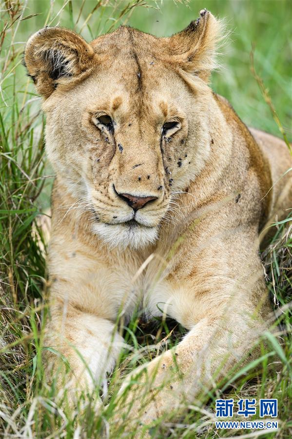 6月17日,在肯尼亞馬賽馬拉國家保護(hù)區(qū),一頭獅子在草叢中休息。 新華社記者 李琰 攝