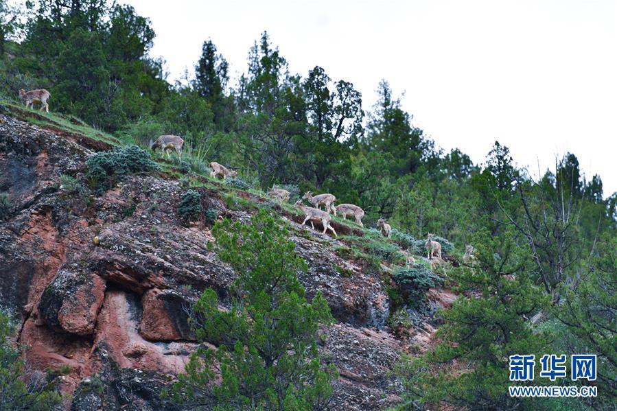 這是在青海省玉樹藏族自治州雜多縣昂賽鄉(xiāng)境內拍攝的一群巖羊(6月21日攝)。 新華社記者 張龍 攝