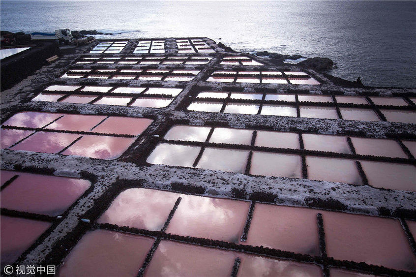 當(dāng)?shù)貢r間2018年11月26日,西班牙拉斯帕馬斯島,實拍薩利納斯豐卡連特鹽田。DESIREE MARTIN /視覺中國