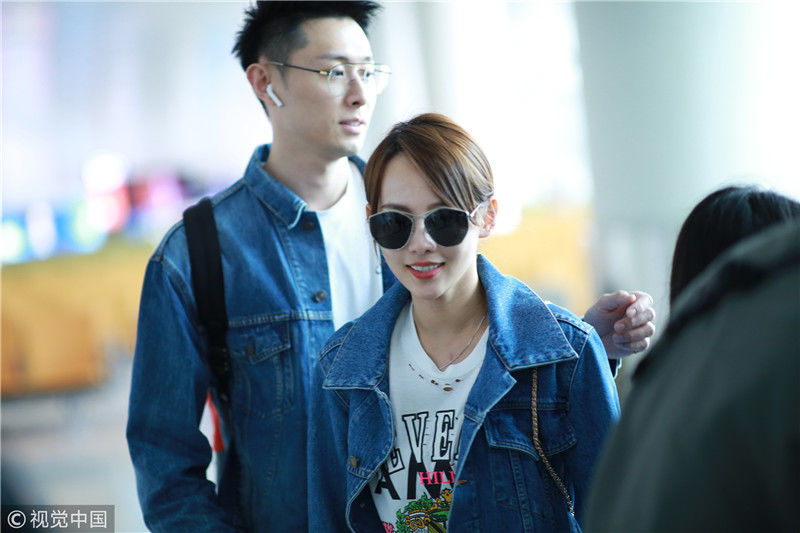 2019年4月1日,張嘉倪與老公買超現(xiàn)身機場,從廣州飛往北京。兩人同穿情侶牛仔裝,一路對視熱聊感情超甜,張嘉倪對鏡頭熱情揮手舉公仔,親和力MAX。匿名/視覺中國編輯/陳進