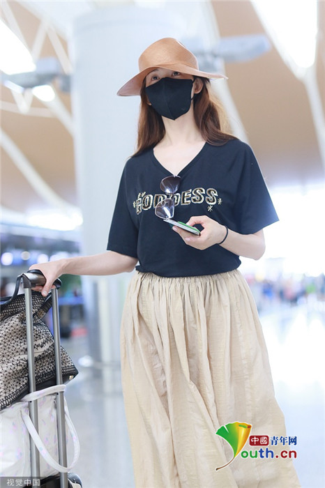 2019年7月23日,上海,林志玲現(xiàn)身機場,穿著打扮與三天前在臺北機場相比毫無變化,依舊身穿黑體恤搭配米色休閑褲,墨鏡也依舊掛在胸前。