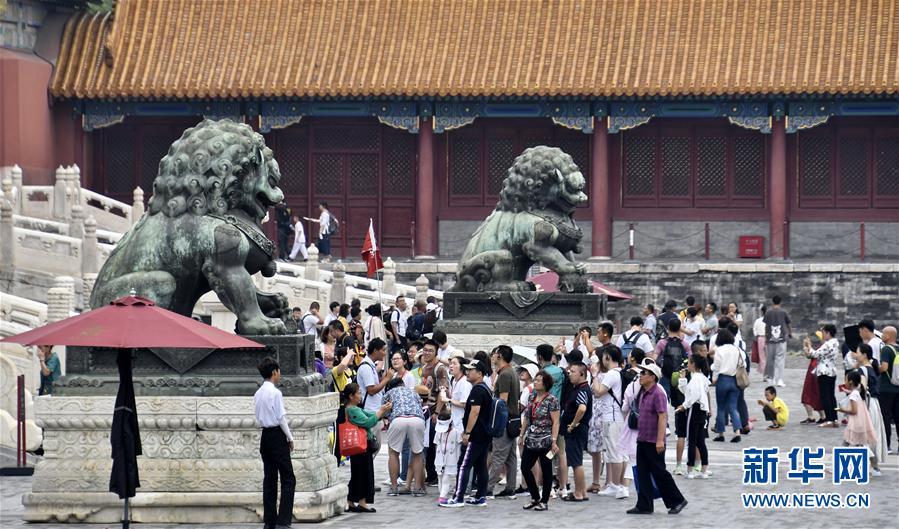 8月3日,游客在故宮參觀。進(jìn)入暑期以來(lái),北京故宮博物院迎來(lái)游覽高峰。故宮博物院采取每日游客限流、熱點(diǎn)景區(qū)導(dǎo)流、供水和醫(yī)療保障等措施,確保游客安全。新華社記者李欣攝
