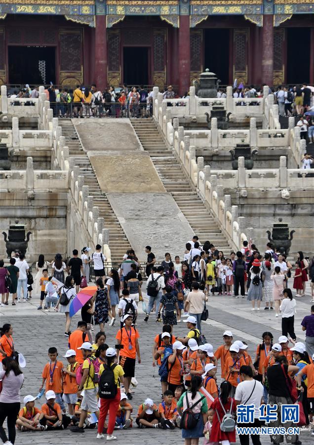 8月3日,游客在故宮參觀。進(jìn)入暑期以來,北京故宮博物院迎來游覽高峰。故宮博物院采取每日游客限流、熱點(diǎn)景區(qū)導(dǎo)流、供水和醫(yī)療保障等措施,確保游客安全。新華社記者李欣攝
