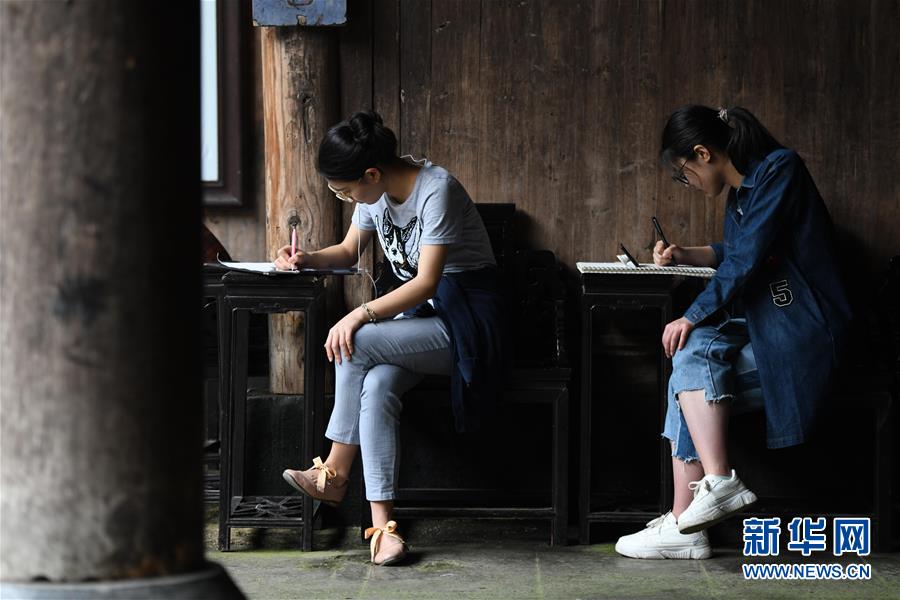 4月24日,繪畫愛好者在西遞風(fēng)景區(qū)寫生。近日,隨著氣溫升高,位于安徽省黟縣的古村落西遞和宏村春意盎然,景色如畫。大批繪畫愛好者前來(lái)寫生,用畫筆描繪古村春色。 新華社記者 張端 攝