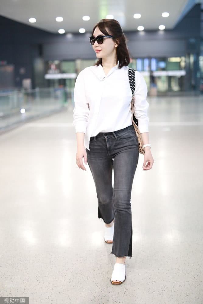 陳數(shù)穿白襯衫知性淺笑甜美迷人 架黑超拎漁網(wǎng)紋展職場(chǎng)女性魅力