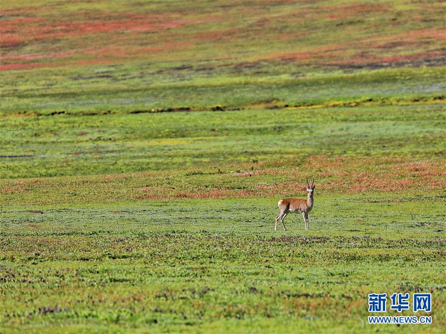 一只藏原羚在草原上駐足(8月14日攝)。 8月12日至14日,來自全國各地的31名自然愛好者聚集在海拔4200米的青海省玉樹藏族自治州稱多縣嘉塘草原,參加“2019嘉塘自然觀察節(jié)”。自然愛好者用獨(dú)特視角記錄珍稀野生動(dòng)植物,觀察三江源生態(tài)。 新華社記者 張大川 攝