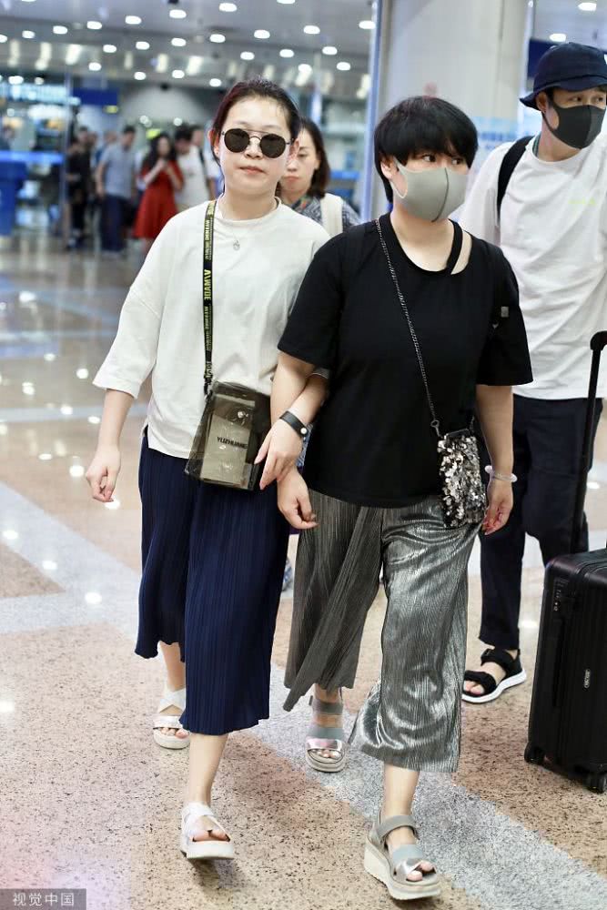 2019年8月15日,北京,小沈陽和妻子沈春陽帶女兒沈佳潤現(xiàn)身機(jī)場,一家三口罕見同框。小沈陽承包行李甘當(dāng)“苦力”,沈春陽和女兒全程挽手親昵似閨蜜,兩人同穿闊腿褲和鞋子,畫面溫馨有愛。