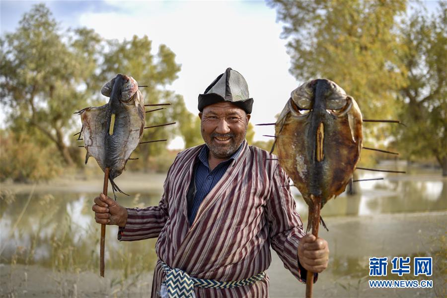 羅布人村寨位于新疆巴音郭楞蒙古自治州尉犁縣,塔里木河從這里流過,沙漠、胡楊、湖泊的奇妙組合吸引了不少游客。生活在這里的羅布人阿木東·艾不東更成為大家關(guān)注的焦點(diǎn)。 阿木東·艾不東61歲,聲音洪亮,面色紅潤,平時(shí)喜歡穿著羅布麻紡織而成的對襟長袍和羊毛氈制成的船形帽子,這是羅布人的傳統(tǒng)裝扮。 如今,許多羅布人不再以打魚為生,他們有的放牧,有的種植,有的開設(shè)店鋪……像阿木東一樣在沙漠中漁獵的羅布人已經(jīng)很少了。 制作羅布人傳統(tǒng)美食——紅柳烤魚是阿木東的拿手絕活。一根紅柳,穿起一條野魚,起一堆炭火,撒少許鹽巴,就可以靜待皮焦肉嫩的紅柳烤魚了。除了傳統(tǒng)口味外,阿木東對羅布烤魚進(jìn)行了改良?!拔颐刂屏艘环N烤魚醬,里面除了辣椒、鹽巴、孜然,還有其他佐料?!碑?dāng)問起具體是哪些配方時(shí),阿木東笑著說:“還有就是塔里木河的味道!” 阿木東是一個(gè)閑不住的人。旅游旺季過后,他會(huì)制作卡盆(胡楊制作的獨(dú)木舟)模型、胡楊筆筒等,等旺季來臨再把這些小物件賣出去。 兩千年前,塔里木河與孔雀河載著天山、昆侖山的雪水,把羅布泊充盈得煙波浩渺。羅布人靠羅布泊水域和周圍的濕地及原始胡楊林繁衍生息。后來,塔里木河下游河床被風(fēng)沙淤塞,干旱斷絕了綠色。2001年,塔里木河流域近期綜合治理項(xiàng)目啟動(dòng)。隨著下游河道兩岸地下水位的抬升,相當(dāng)數(shù)量的胡楊從死亡的邊緣“醒來”,重新護(hù)佑這里的綠洲與百姓。 近幾年,阿木東生活的地方基礎(chǔ)設(shè)施大為改善,柏油馬路修到了塔里木河畔。前來領(lǐng)略大漠胡楊的游客也越來越多。據(jù)了解,截至7月底,尉犁縣今年已接待游客78萬人次,旅游總收入超過1.1億元,同比分別增長63.14%和119.42%。 新華社記者 趙戈 攝