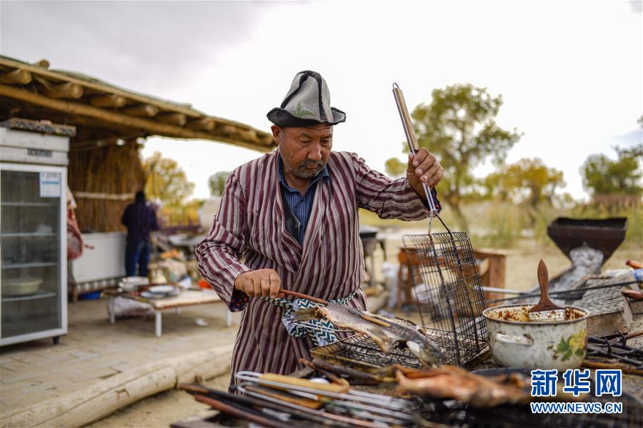 羅布人村寨位于新疆巴音郭楞蒙古自治州尉犁縣,塔里木河從這里流過,沙漠、胡楊、湖泊的奇妙組合吸引了不少游客。生活在這里的羅布人阿木東·艾不東更成為大家關(guān)注的焦點(diǎn)。 阿木東·艾不東61歲,聲音洪亮,面色紅潤,平時(shí)喜歡穿著羅布麻紡織而成的對襟長袍和羊毛氈制成的船形帽子,這是羅布人的傳統(tǒng)裝扮。 如今,許多羅布人不再以打魚為生,他們有的放牧,有的種植,有的開設(shè)店鋪……像阿木東一樣在沙漠中漁獵的羅布人已經(jīng)很少了。 制作羅布人傳統(tǒng)美食——紅柳烤魚是阿木東的拿手絕活。一根紅柳,穿起一條野魚,起一堆炭火,撒少許鹽巴,就可以靜待皮焦肉嫩的紅柳烤魚了。除了傳統(tǒng)口味外,阿木東對羅布烤魚進(jìn)行了改良?!拔颐刂屏艘环N烤魚醬,里面除了辣椒、鹽巴、孜然,還有其他佐料?!碑?dāng)問起具體是哪些配方時(shí),阿木東笑著說:“還有就是塔里木河的味道!” 阿木東是一個(gè)閑不住的人。旅游旺季過后,他會(huì)制作卡盆(胡楊制作的獨(dú)木舟)模型、胡楊筆筒等,等旺季來臨再把這些小物件賣出去。 兩千年前,塔里木河與孔雀河載著天山、昆侖山的雪水,把羅布泊充盈得煙波浩渺。羅布人靠羅布泊水域和周圍的濕地及原始胡楊林繁衍生息。后來,塔里木河下游河床被風(fēng)沙淤塞,干旱斷絕了綠色。2001年,塔里木河流域近期綜合治理項(xiàng)目啟動(dòng)。隨著下游河道兩岸地下水位的抬升,相當(dāng)數(shù)量的胡楊從死亡的邊緣“醒來”,重新護(hù)佑這里的綠洲與百姓。 近幾年,阿木東生活的地方基礎(chǔ)設(shè)施大為改善,柏油馬路修到了塔里木河畔。前來領(lǐng)略大漠胡楊的游客也越來越多。據(jù)了解,截至7月底,尉犁縣今年已接待游客78萬人次,旅游總收入超過1.1億元,同比分別增長63.14%和119.42%。 新華社記者 趙戈 攝