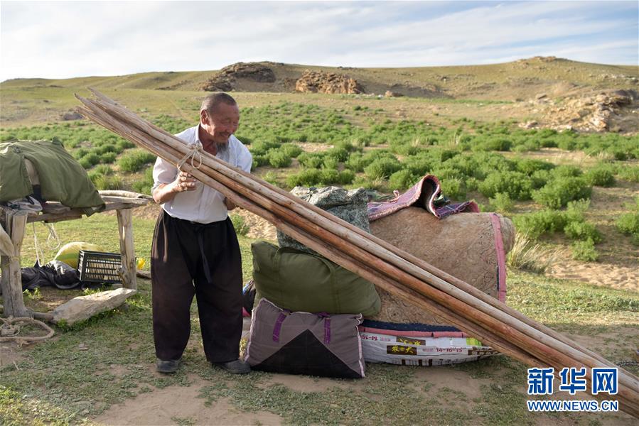 在新疆阿勒泰地區(qū)福??h,牧民收拾家中大件物品并準(zhǔn)備將其提前運(yùn)至夏季牧場(chǎng)(6月6日攝)。新華社記者丁磊攝