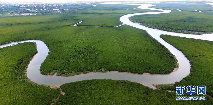 這是位于??诘暮D蠔|寨港國家級(jí)自然保護(hù)區(qū)內(nèi)的紅樹林(2018年7月24日無人機(jī)拍攝)。新華社記者郭程攝