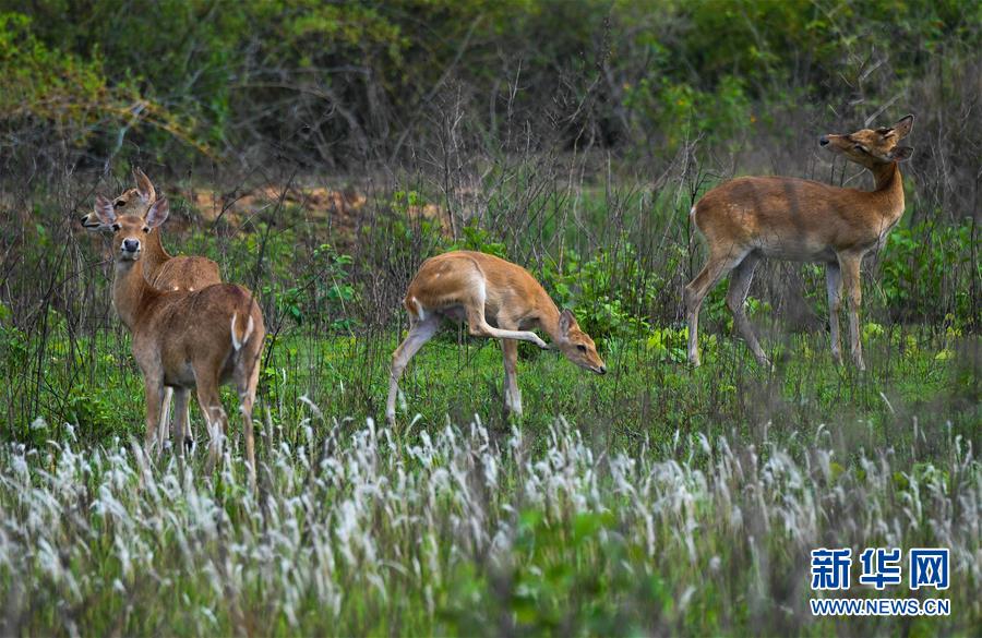 坡鹿在海南大田國家級(jí)自然保護(hù)區(qū)內(nèi)休息(2018年4月29日攝)。新華社記者 楊冠宇 攝