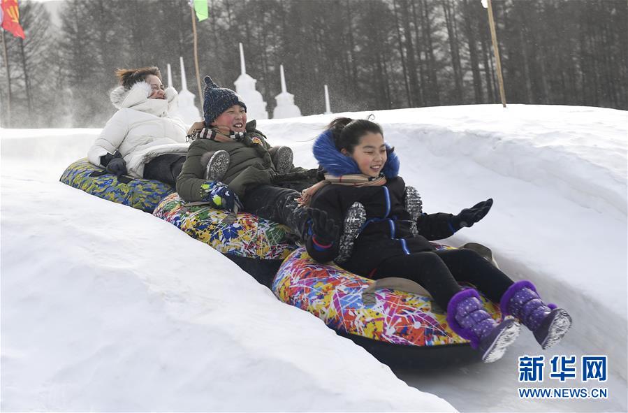 游客在二合雪鄉(xiāng)雪圈公園內(nèi)體驗(yàn)滑雪圈(1月23日攝)。 新華社記者許暢攝