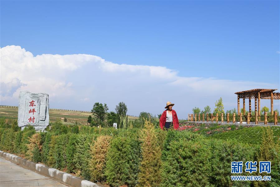 村民經(jīng)過(guò)東坪村新村的綠化帶(6月13日攝)。 新華社記者 楊晨光 攝