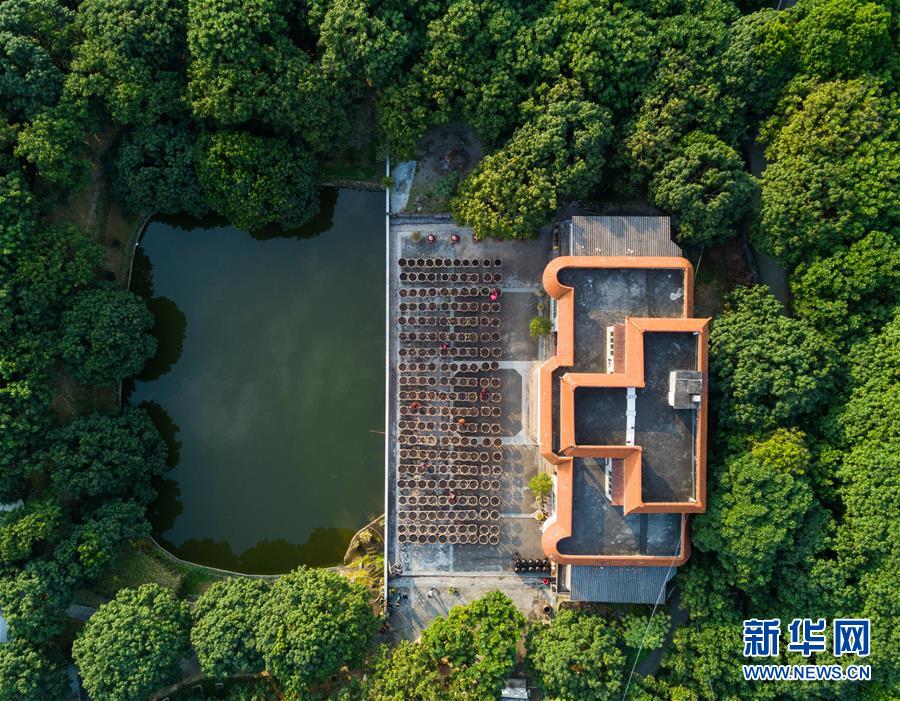 福建省永春縣岵山鎮(zhèn)茂霞村熟地文創(chuàng)園依山傍水,四周是茂密的荔枝林(1月28日無(wú)人機(jī)拍攝)。 新華社記者 宋為偉 攝