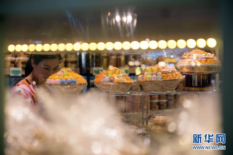 9月1日,顧客在泰國曼谷著名的“九姐妹甜點(diǎn)”店挑選傳統(tǒng)泰式甜點(diǎn)。新華社記者 張可任 攝