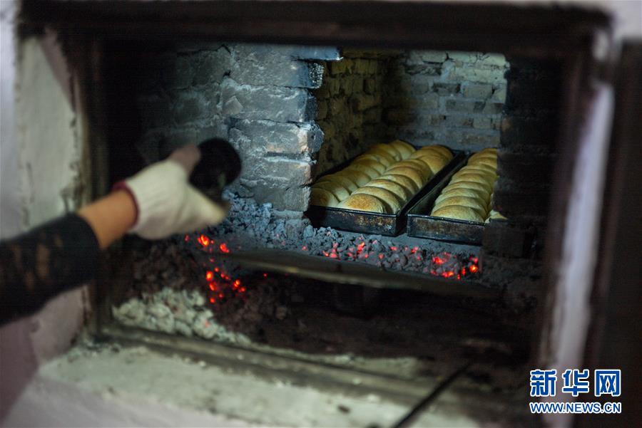 8月29日,付艷梅在查看爐內(nèi)的面包。新華社記者張豪夫攝