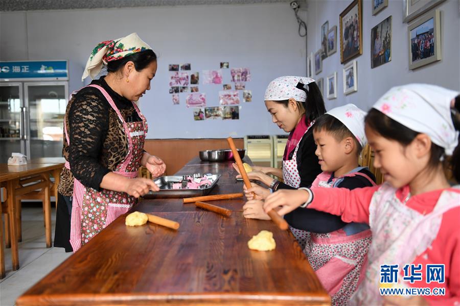 8月27日,付艷梅在教游客揉面團(tuán)。新華社記者劉磊攝