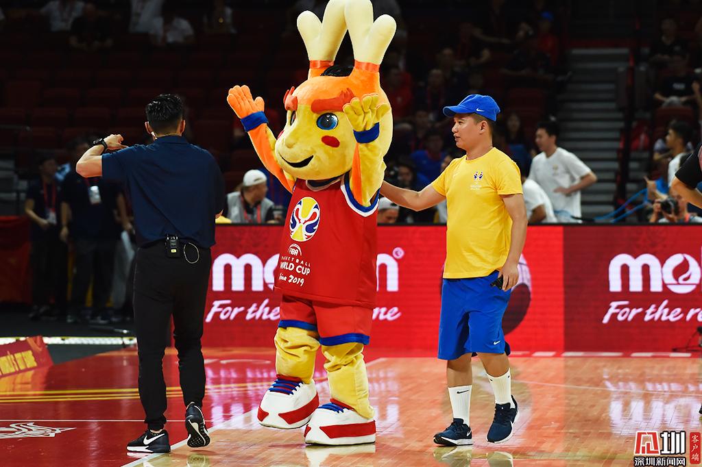 2019年男籃世界杯吉祥物現(xiàn)身深圳灣體育中心。