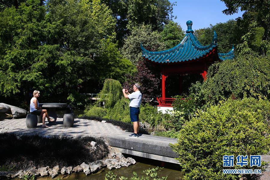 8月24日,在比利時(shí)布呂熱萊特市,游客參觀天堂動(dòng)物園的“中國(guó)園”。新華社記者鄭煥松攝