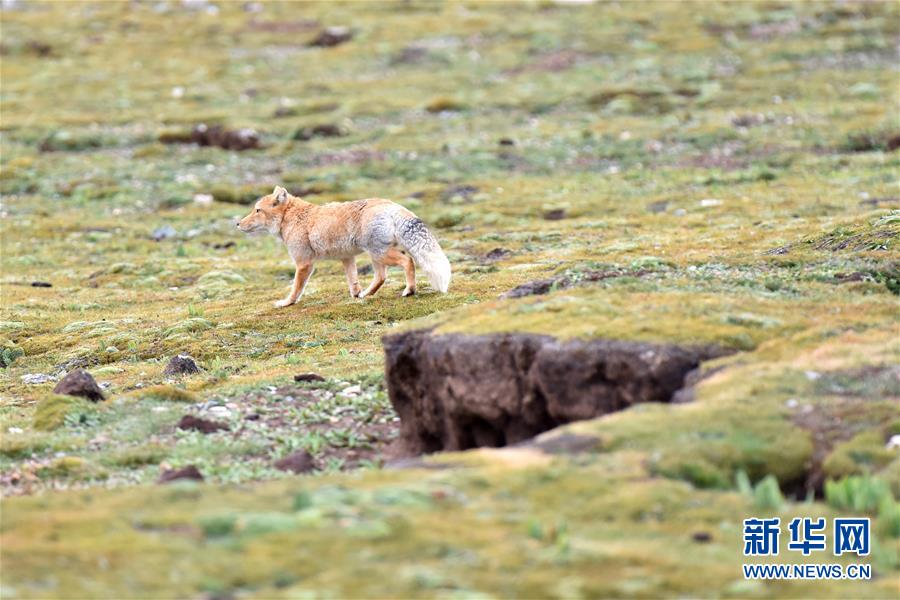 在青海省玉樹藏族自治州治多縣,一只藏狐雨后“漫步”在草場(chǎng)上(9月12日攝)。 新華社記者 孫瑞博 攝