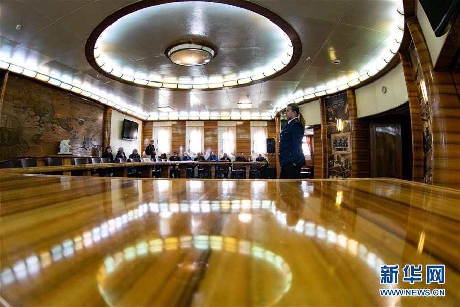 9月14日,在俄羅斯摩爾曼斯克,游客在核動力破冰船“列寧”號內部聆聽工作人員講解。 新華社記者 白雪騏 攝