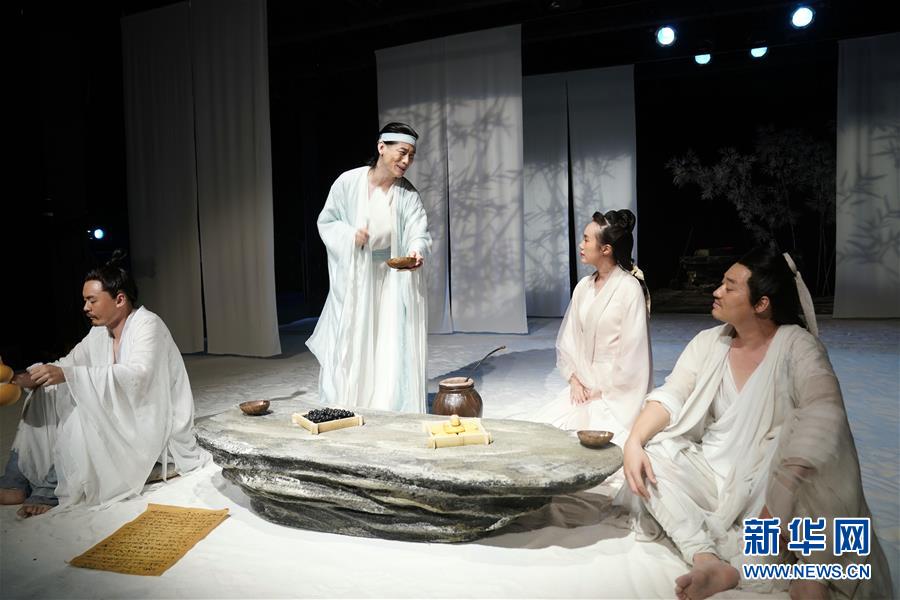 9月16日,演員在話(huà)劇《廣陵絕》中表演。 當(dāng)日,話(huà)劇《廣陵絕》在北京人藝實(shí)驗(yàn)劇場(chǎng)上演。新華社記者 金良快 攝