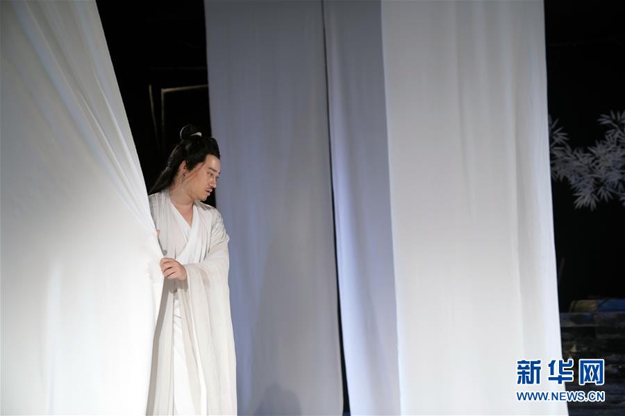 9月16日,演員在話(huà)劇《廣陵絕》中表演。 當(dāng)日,話(huà)劇《廣陵絕》在北京人藝實(shí)驗(yàn)劇場(chǎng)上演。 新華社記者 金良快 攝