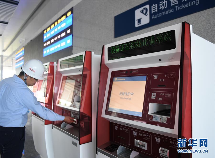 9月18日,工作人員對京雄城際北京大興站內(nèi)的自動(dòng)售票機(jī)進(jìn)行檢查。新華社記者張晨霖?cái)z