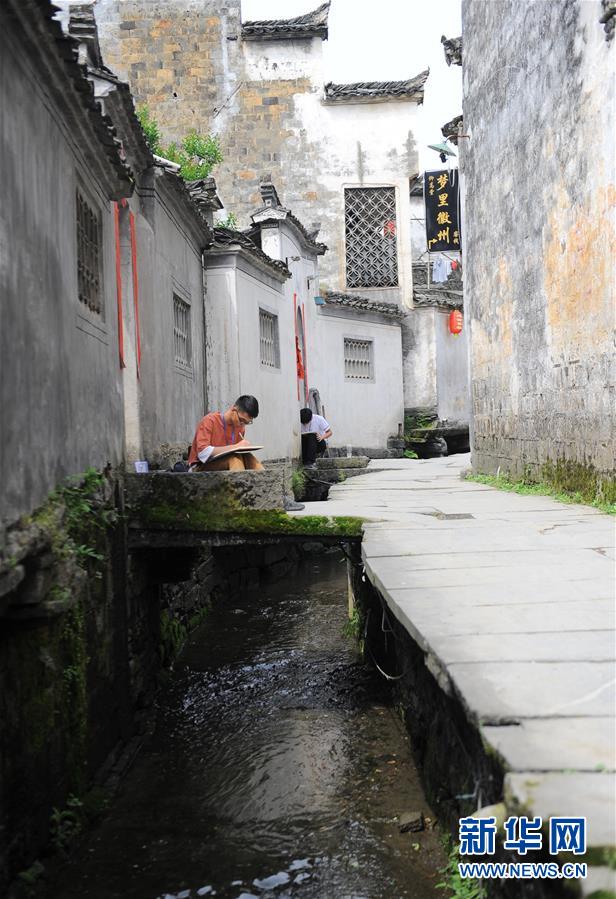 4月24日,繪畫愛好者在西遞風(fēng)景區(qū)寫生。新華社記者任鵬飛攝