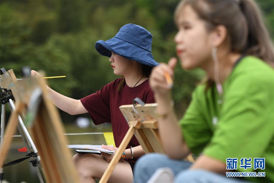 4月24日,繪畫愛好者在西遞風(fēng)景區(qū)寫生。新華社記者張端攝