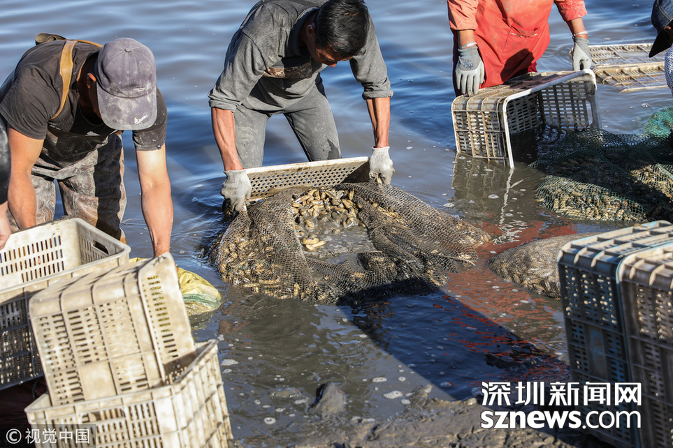 遼寧長海漁民打撈牡蠣 場面壯觀!